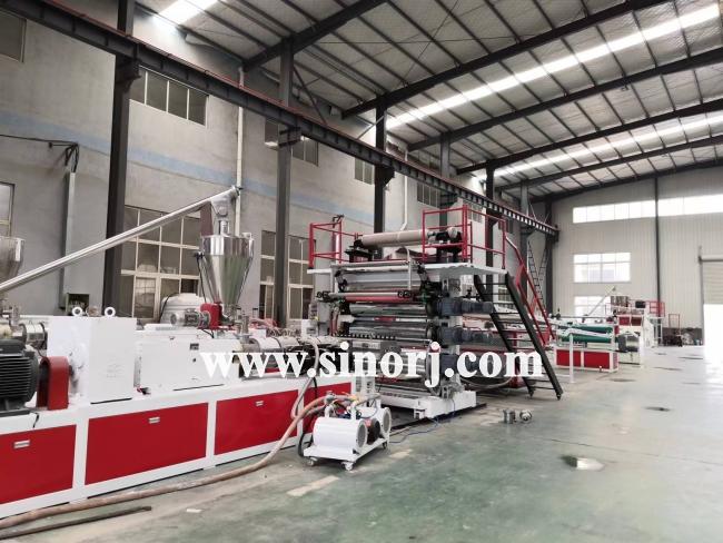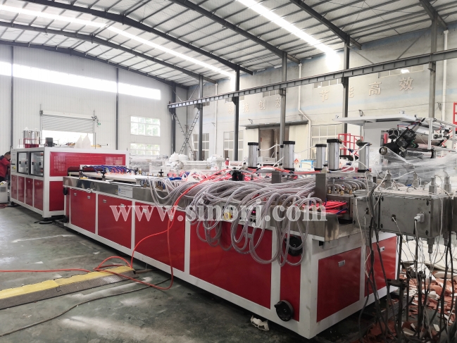 等待發貨的三套設備:PVC木塑中空門板設備,仿大理石設備,SPC地板設備。