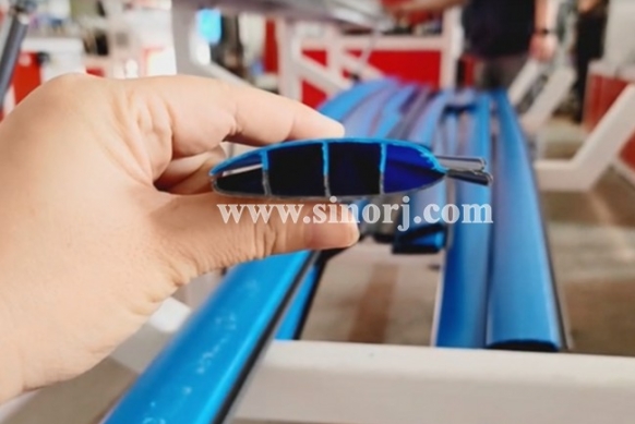 PC共擠型材生產(chǎn)線(xiàn)試機(jī)進(jìn)行中