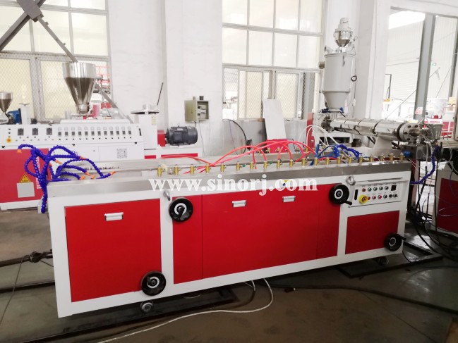 PC共擠型材生產(chǎn)線(xiàn)工廠(chǎng)內(nèi)試機(jī)進(jìn)行中