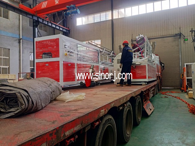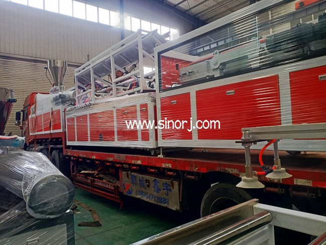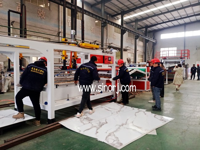 UV仿大理石板生產(chǎn)線工廠內(nèi)試機與省內(nèi)格柵板生產(chǎn)線發(fā)貨中同時進行
