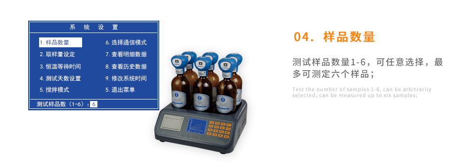 可以同時測量6個樣品無需換算、直接顯示BOD濃度值;