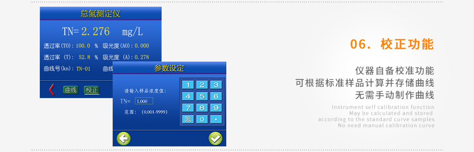 儀器自備校準(zhǔn)功能,可根據(jù)標(biāo)準(zhǔn)樣品計(jì)算并存儲(chǔ)曲線,無(wú)需手動(dòng)制作曲線;